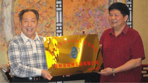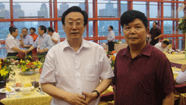 時(shí)任河南省人民政府省長郭庚茂先生(左)與臺州商會支部書記、《百花散》傳人梅安富先生合影
