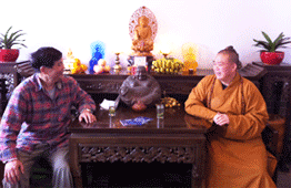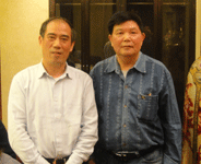 中國抗癌協(xié)會常務(wù)理事、河南省抗癌協(xié)會會長楊文獻(xiàn)教授和《百花散》傳人梅先生合影